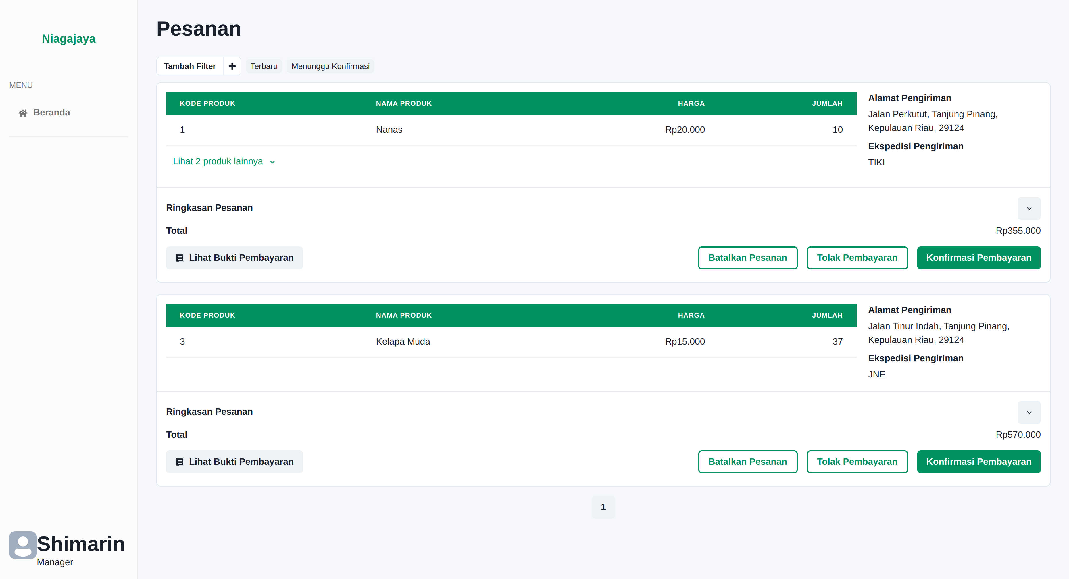 - Warehouse Admin hanya dapat membatalkan pesanan warehousenya saja.